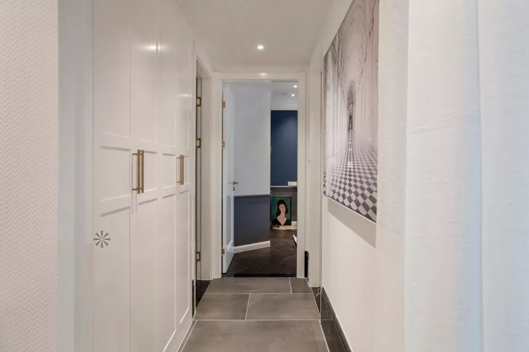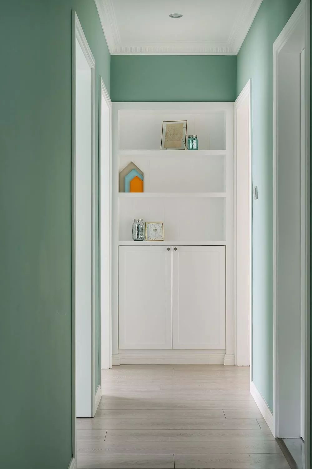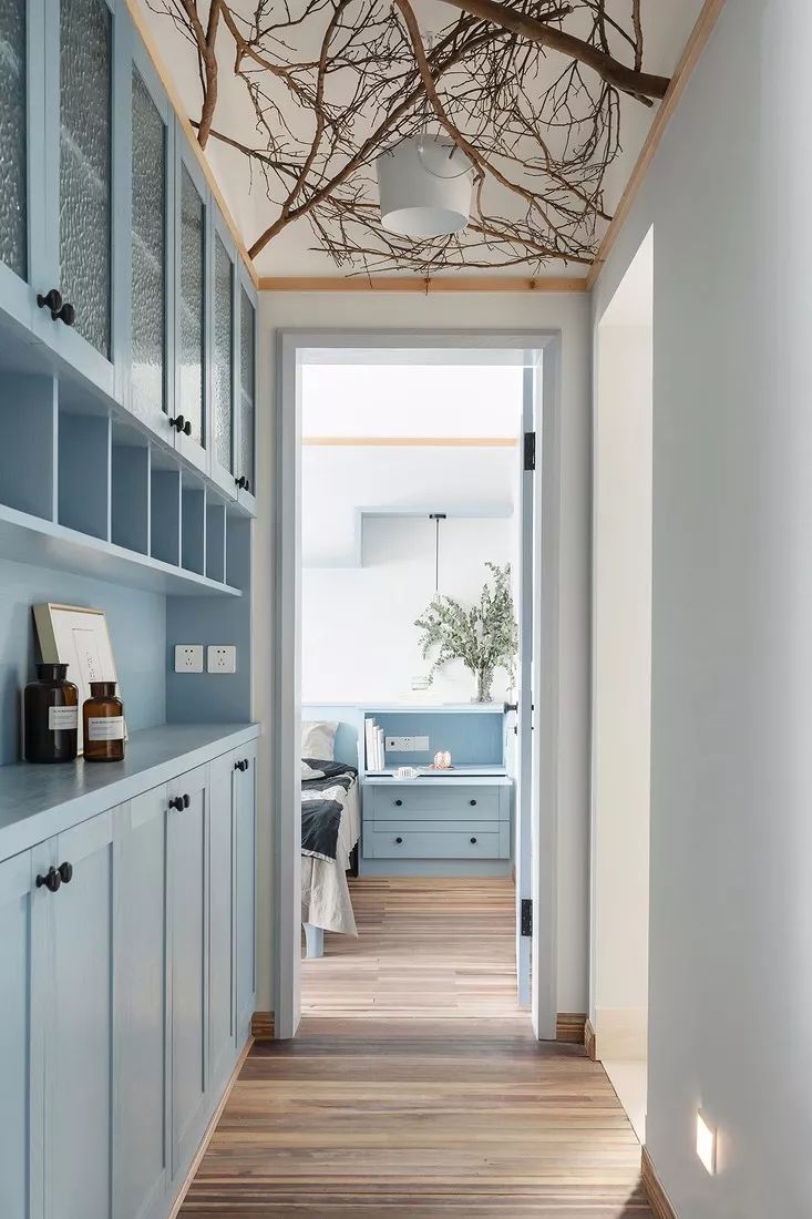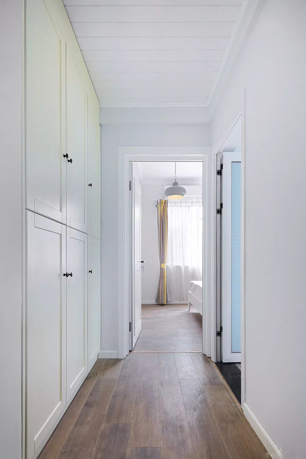 為走廊過道量身定做的柜子,隱藏著巨大的收納空間,全部采用將內(nèi)部封閉起來的柜門設(shè)計(jì),從而保持走廊整潔的觀感,空出的柜面上,還可以添置些裝飾物。
