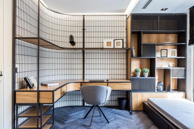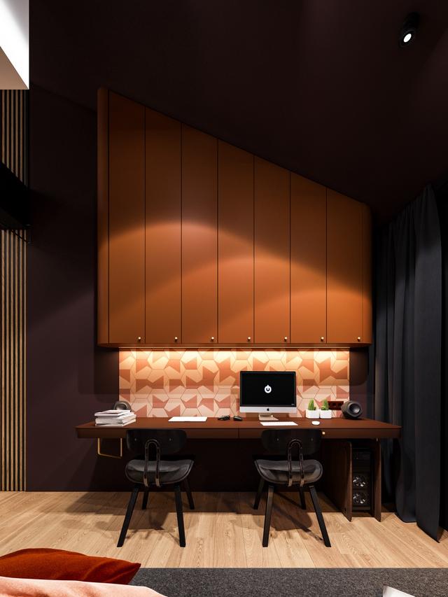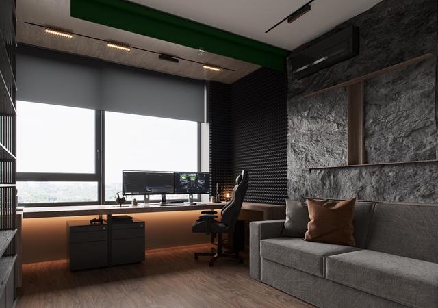 隔音因素。這個工作空間以隔音墻板為特色。將室內(nèi)噪音或辦公室噪音排除在外,提前考慮,并將其作為裝飾的一部分。