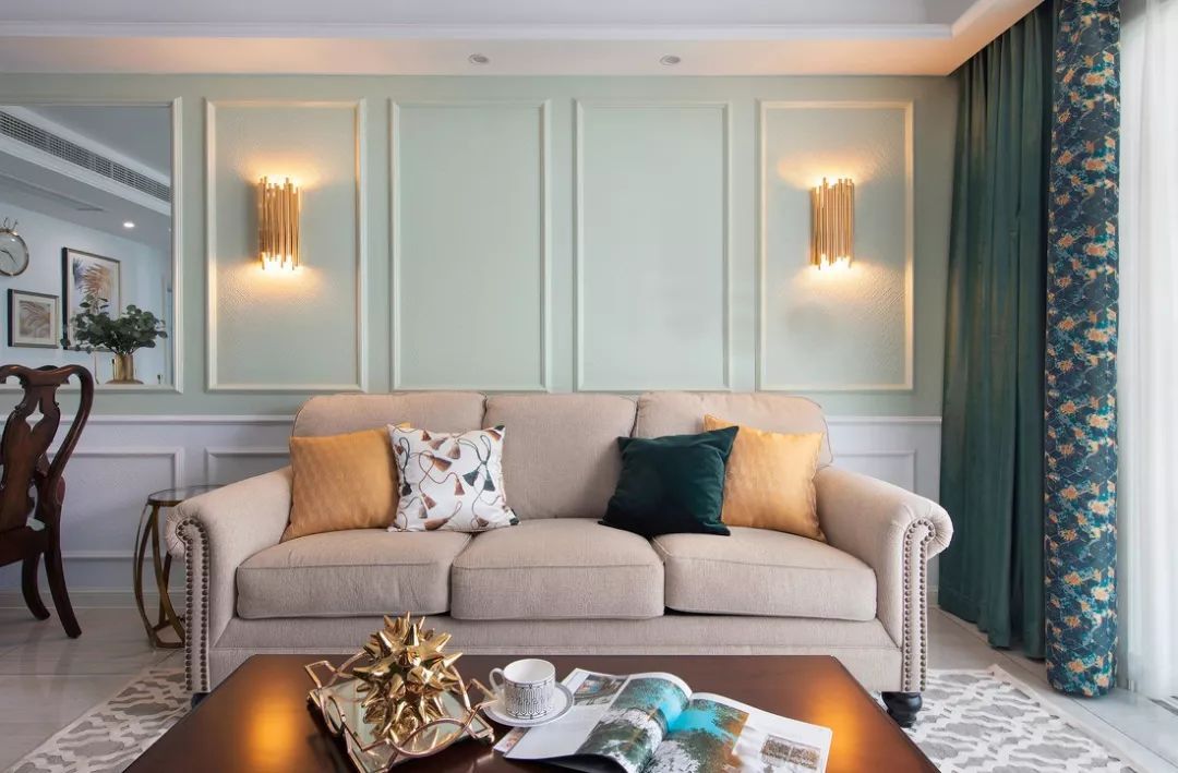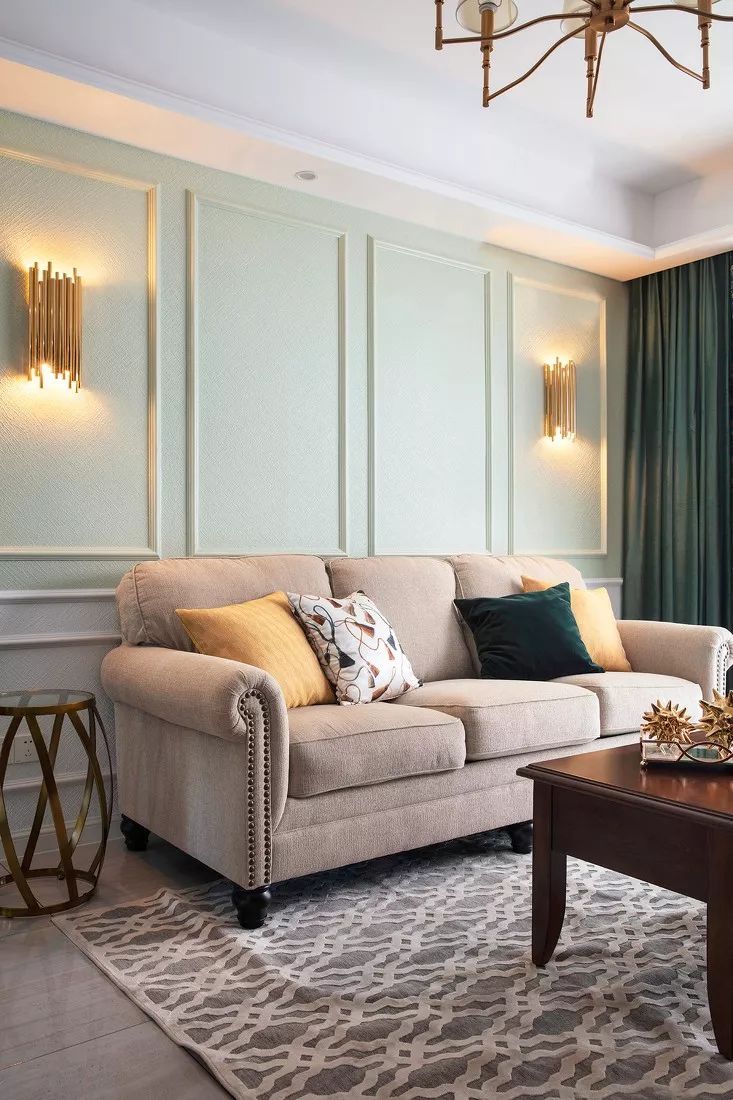 ▲ 沙發(fā)背景墻做了上下分色的設(shè)計(jì),顯得清新又淡雅,讓整個(gè)空間變得靈動。