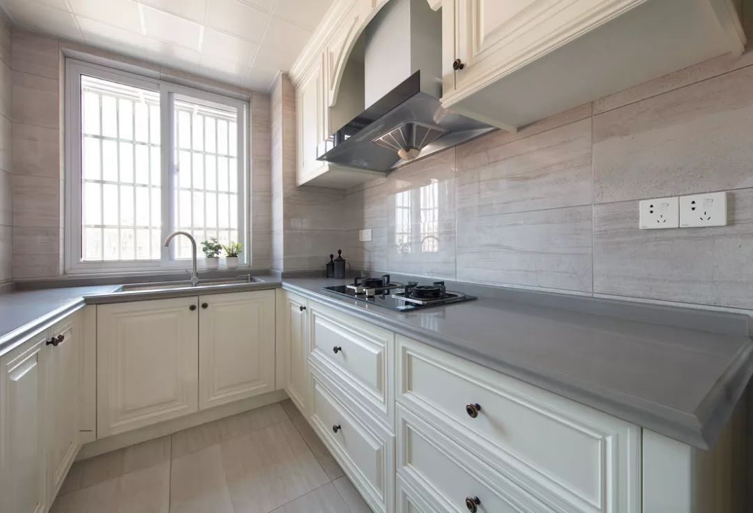 ▲ 廚房整體選用灰色與白色為主調(diào),構(gòu)造一個(gè)純凈明亮的空間,石材自帶的花紋也更添一份自然與別致。