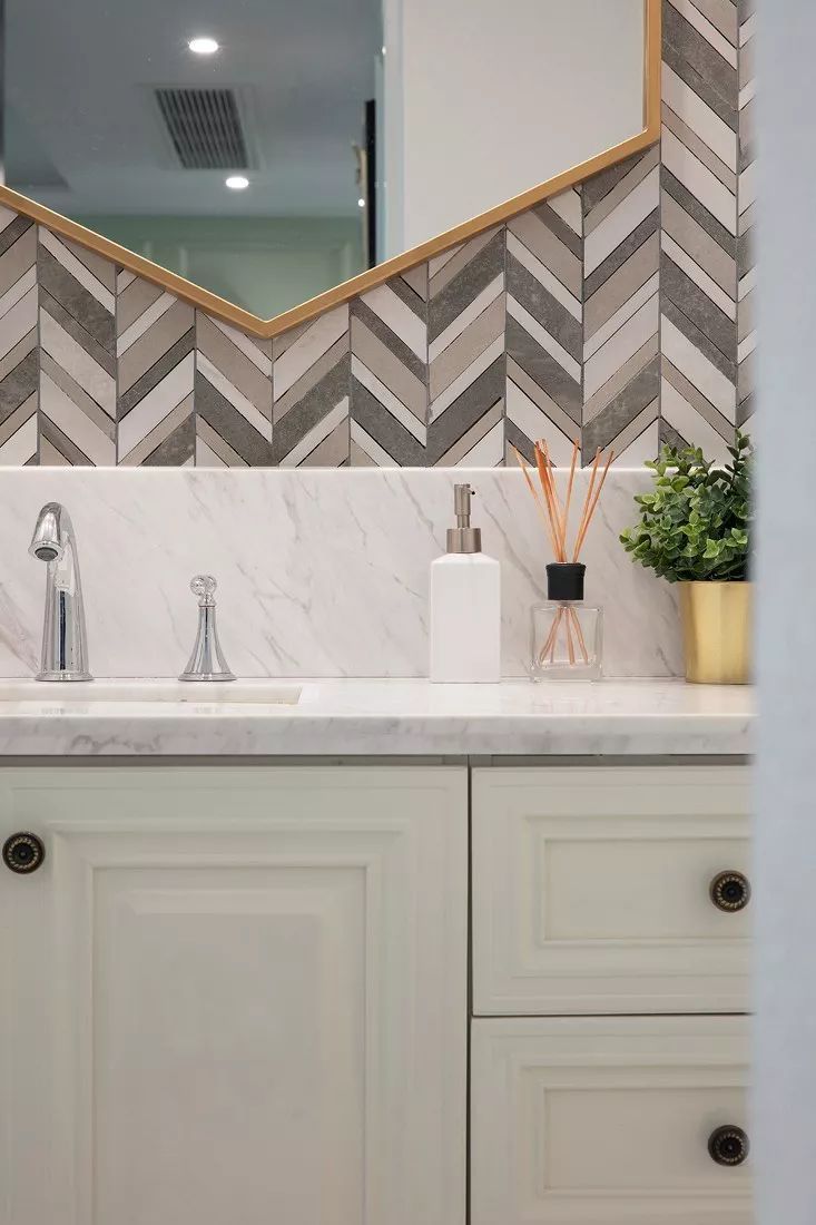 ▲ 衛(wèi)生間的仿古磚搭配造型豐富的馬賽克磚,增添空間層次與質(zhì)感。