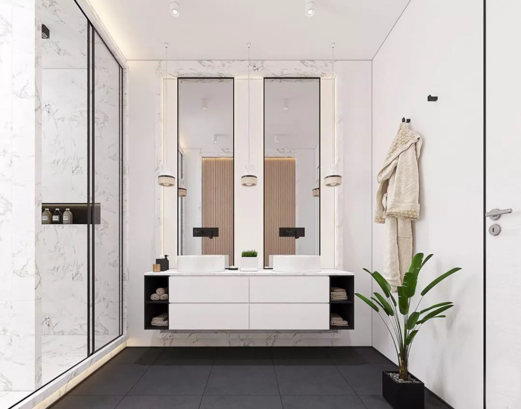 衛(wèi)生間肯定是要有鏡子的,既然如此,何不讓鏡子變得更實用呢?鏡柜是充分利用垂直空間的一種選擇,對小戶型而言尤其適用。