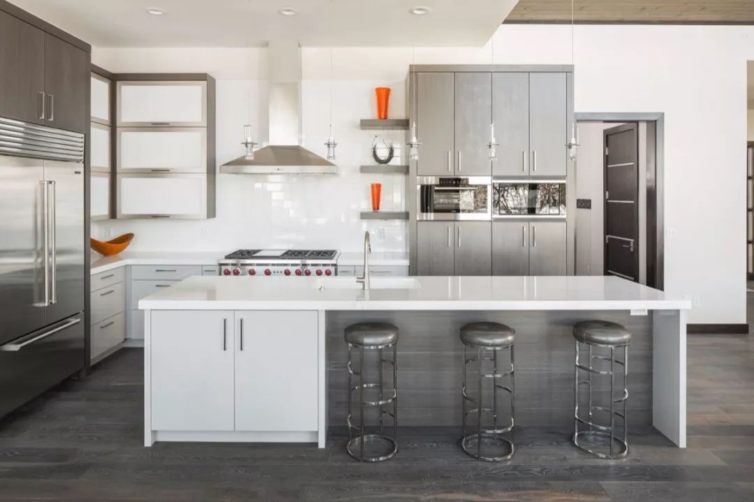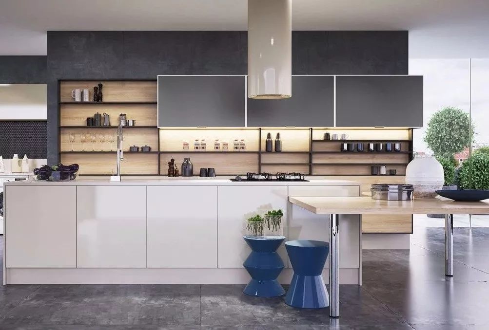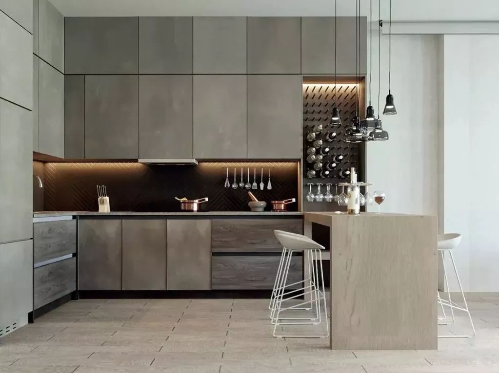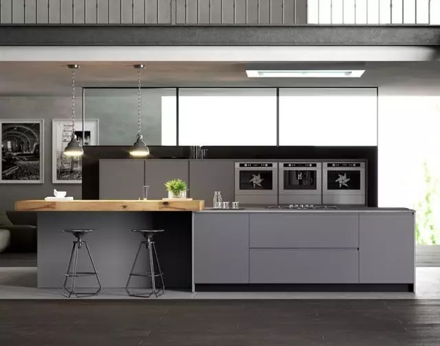 如果你擔心大面積的灰色,會讓廚房顯得有些“清冷”,不妨大膽地加入一些原木材質來點綴,使整個空間看起來更有層次,也瞬間多出幾分溫暖的味道。