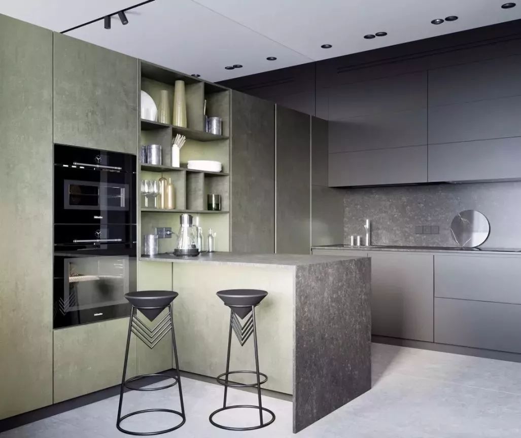 綠色系是一種充滿生命力的色彩,低調靜謐中傳遞著一股濃郁的自然氣息。為時尚的廚房空間注入一絲活力的青綠色調,營造出符合男士品位的摩登look,那么整個廚房氣質就會瞬間提升,更添一份靈動與雅致的魅力。