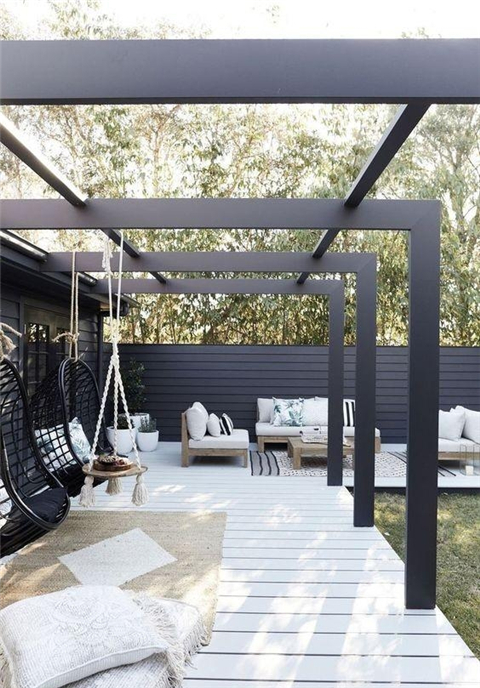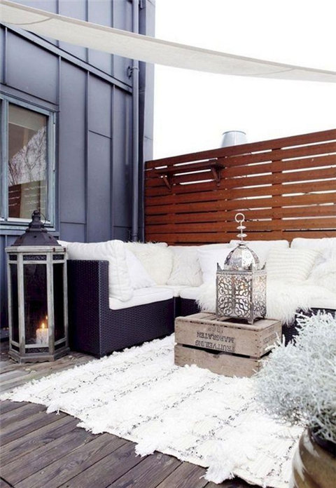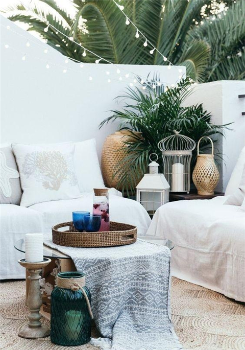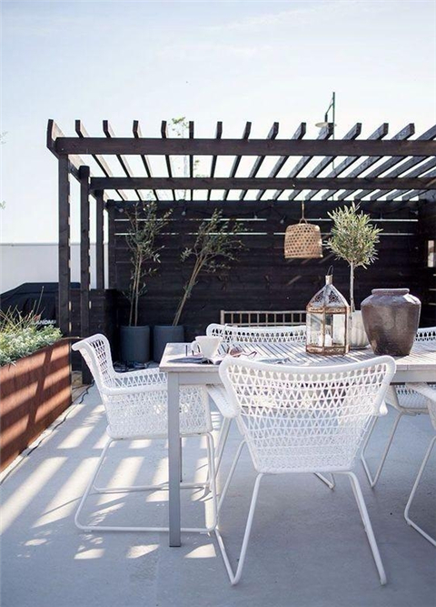 將露臺作為休閑區(qū)使用,是最為通用的一種做法。它的設定,不同于單純的花園與餐廳,而是更多元化的結合體。綠植、花束、桌椅、抱枕、地毯、串燈、吊椅,一切串聯(lián)式的空間配置,讓景中有景,視覺疊加之中更生趣味。