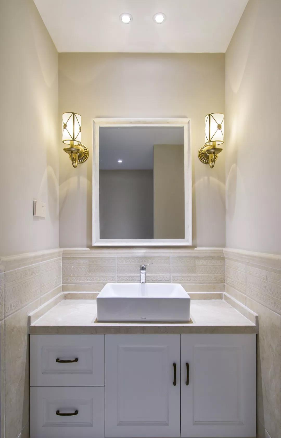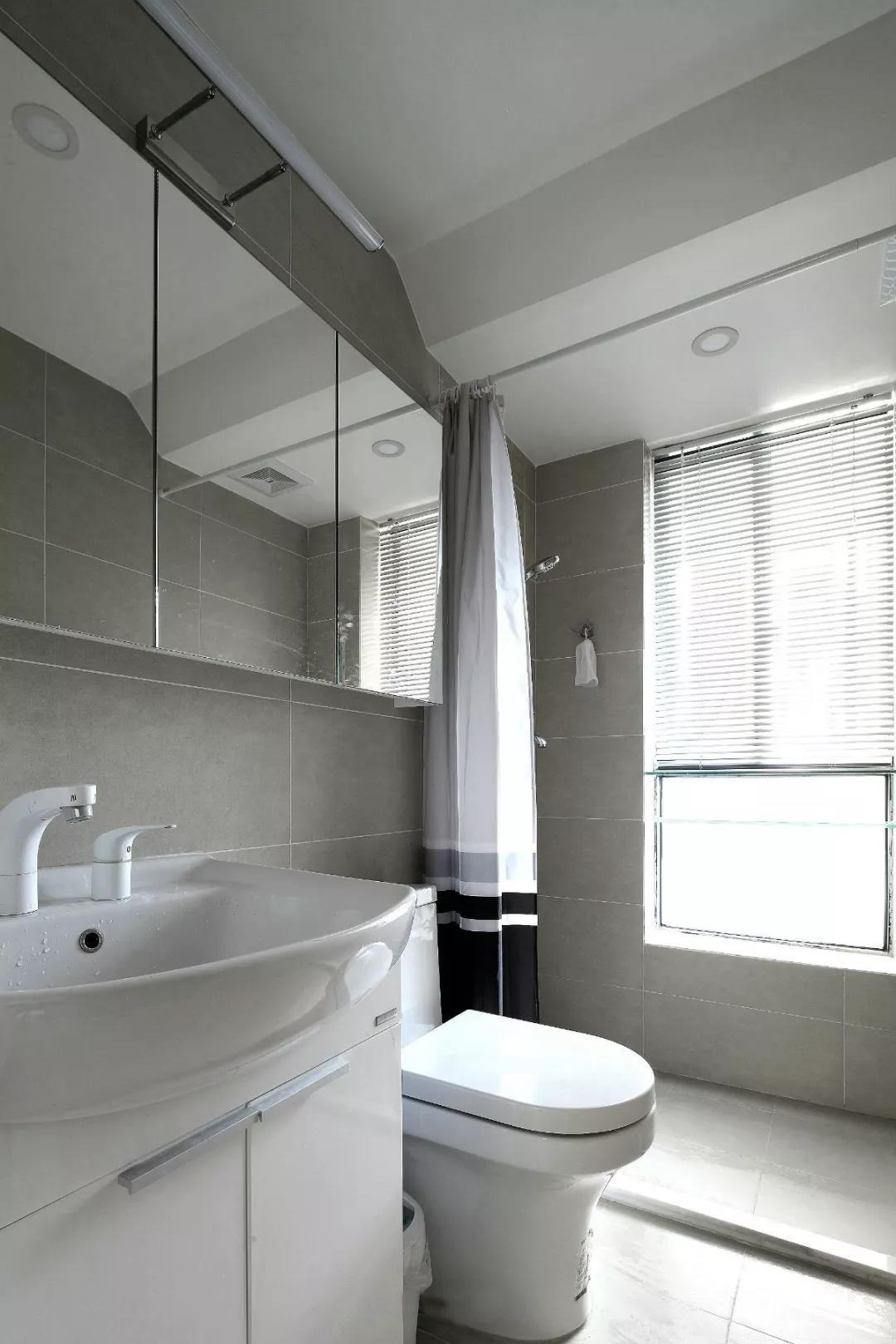 暗衛(wèi)一定要選擇亮色材質,不論是墻地磚還是浴室柜最好選擇偏白色的,這樣最起碼給人視覺感受上就增亮了。