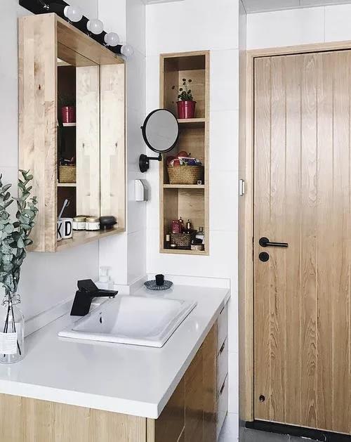 化妝品、洗面奶放的到處都是?那我們不妨在洗手臺側面墻面上做一個壁龕,拿放也是很方便的。