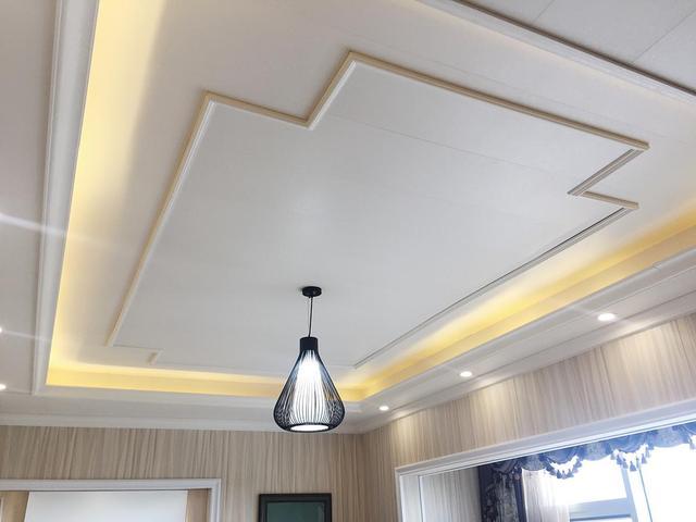 一級吊頂,簡而言之,就簡單做了一個平面,當中并沒有進行任何的裝飾。在層高占據(jù)方面,差不多在12~15cm左右,這種對于小戶型或者層高比較低的房子,比較合適,缺點,沒那么好看。