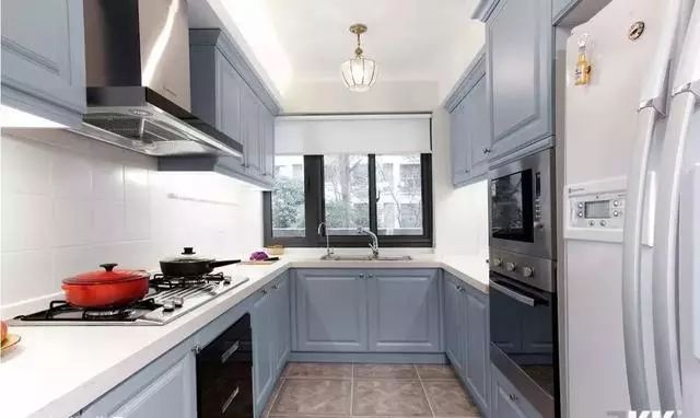 ·如果是無陽臺廚房,第三面墻的閑置會浪費空間,這時就可以選擇U型布局,空間使用率會更高。