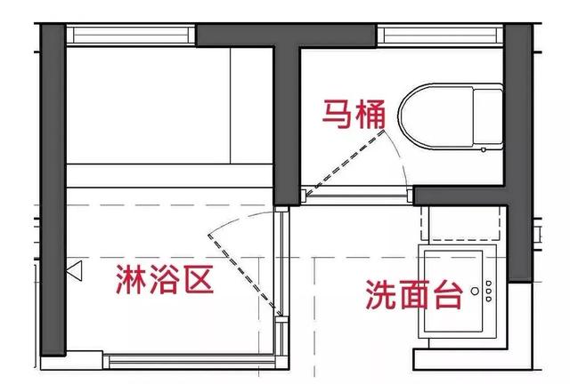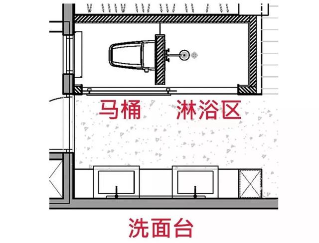 簡單來說,除了干濕分離區(qū)外,再將洗漱臺(tái)單獨(dú)分離出去(就是將洗漱臺(tái)挪到衛(wèi)生間外面),讓洗漱和沐浴徹底分開,既節(jié)約時(shí)間又保證了衛(wèi)生。