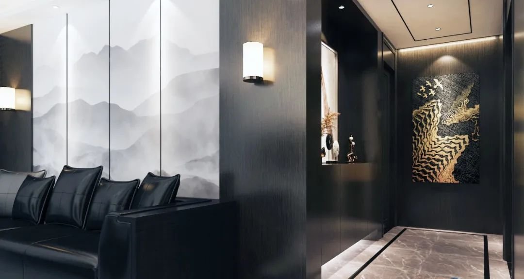 小貼士:在暗色系的空間內(nèi),可以嘗試搭配一些明亮的色彩,例如亮色系的壁畫(huà)、家具或是配飾,讓室內(nèi)氛圍有種開(kāi)闊明朗的感覺(jué),減少壓抑感。