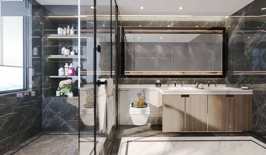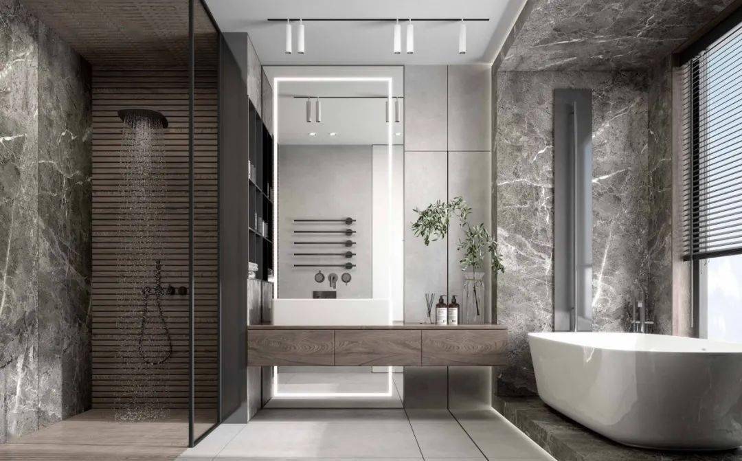 增加衛(wèi)生間使用效率,家人洗澡的同時(shí),其他家庭成員可以利用干區(qū)位置,洗漱、洗澡互不干擾。