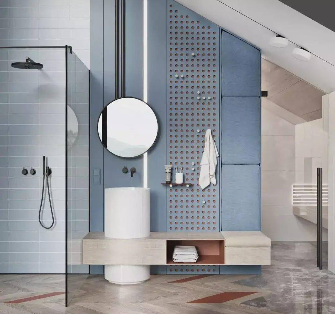 二式分離是最簡(jiǎn)單也最節(jié)約空間的設(shè)計(jì),只有浴室、廁位兩個(gè)功能區(qū),需要把洗漱臺(tái)單獨(dú)“拎”出衛(wèi)生間之外。