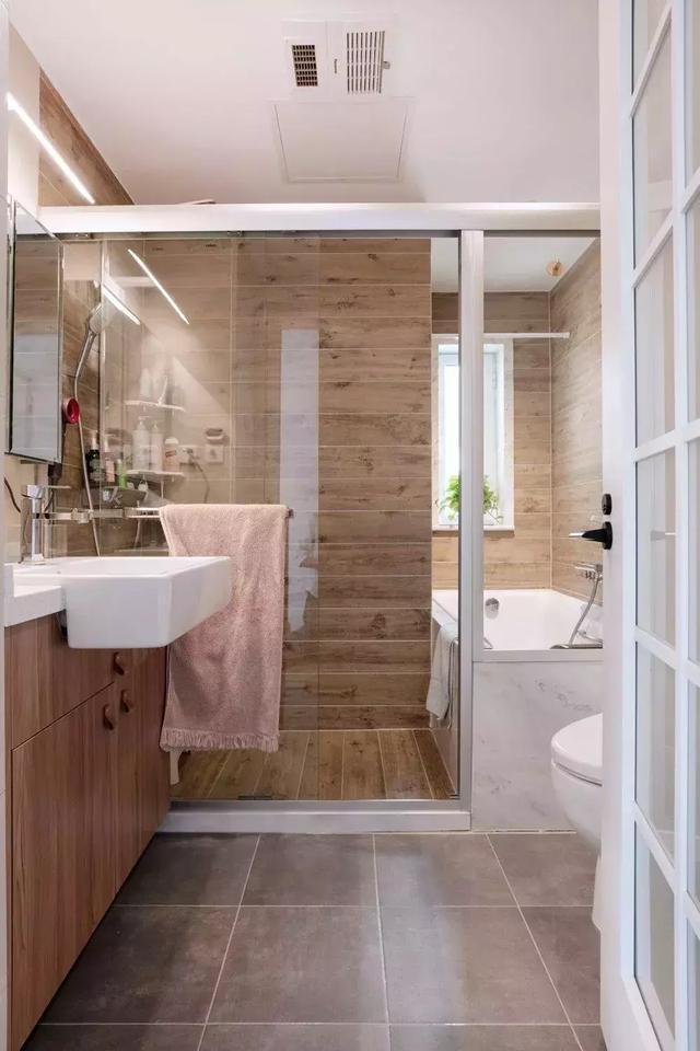 浴室光線(xiàn)越充足,看起來(lái)就更明亮、舒適。建議你衛(wèi)生間還是帶窗戶(hù)的吧,一是讓光線(xiàn)投入,二是利于通風(fēng)透氣,減少異味。若是礙于因素只能裝暗衛(wèi),那就著重在照明設(shè)備上,例如配置質(zhì)量好一點(diǎn)的LED燈,效果好還省電;此外壁掛式的燈飾,也會(huì)是不錯(cuò)的選擇。