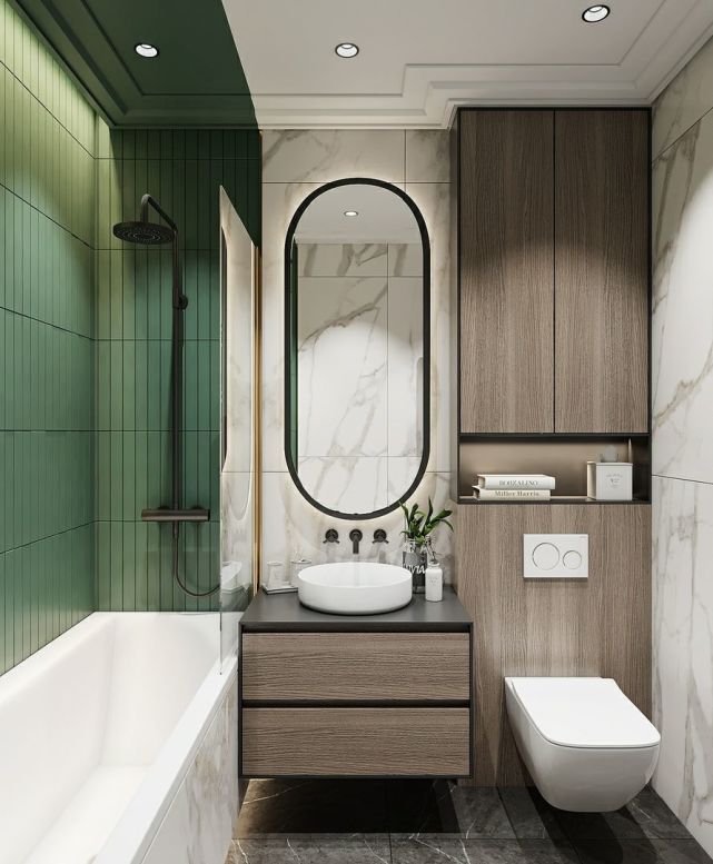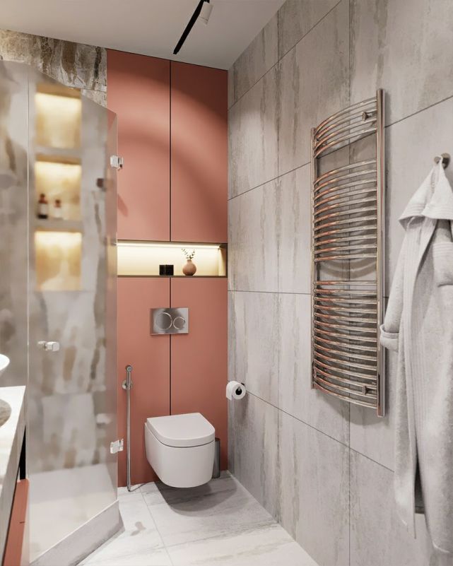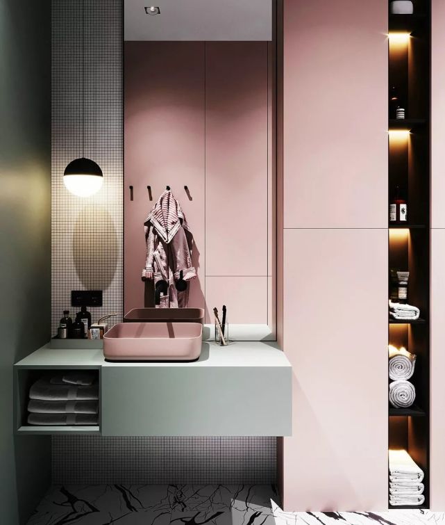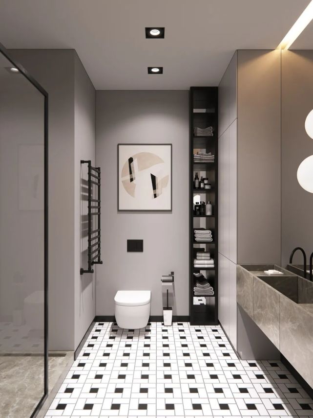 衛(wèi)生間管道多,用常規(guī)方法完全包起來太浪費了??梢岳貌灰?guī)則空間在包管時設計壁龕,既能完美隱藏各類管道,不占空間面積,還實用美觀。