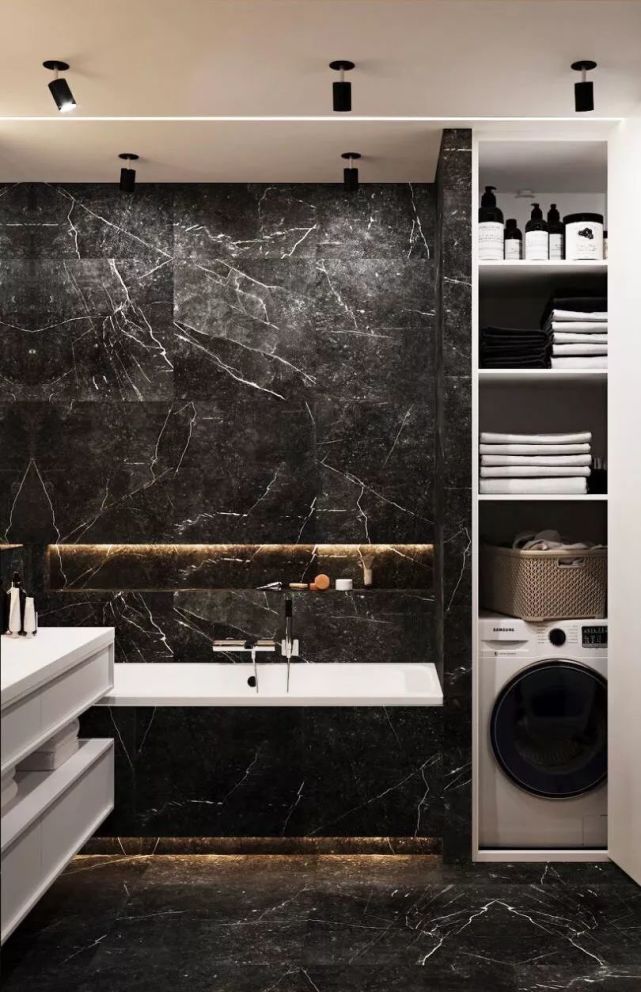 想要突顯衛(wèi)生間的氛圍,又希望進行補充照明,可以在壁龕內(nèi)安裝暗藏式的防水LED照明燈帶,不僅能讓壁龕猶如藝術品般成為焦點,還能增添溫暖柔和的氛圍。