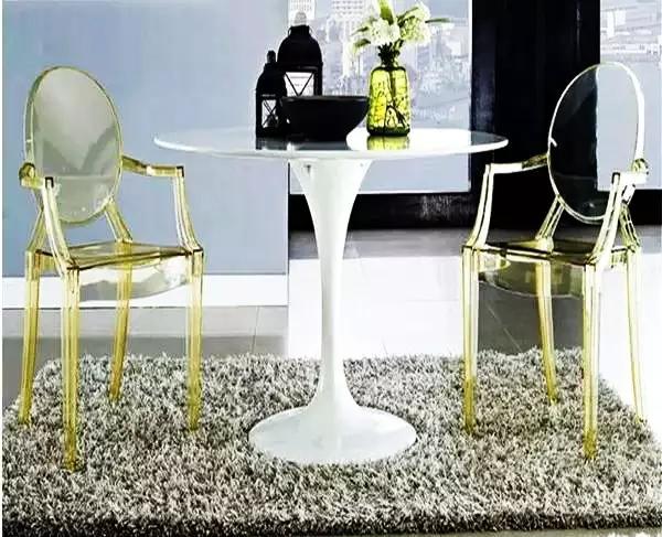 比如以白瓷花瓶代替木制花器,選擇反光金屬質(zhì)地的燈具而不是美式黑色鐵藝燈,擺個亞克力的椅子,通透輕盈的質(zhì)感會讓你的小黑屋瞬間變亮。