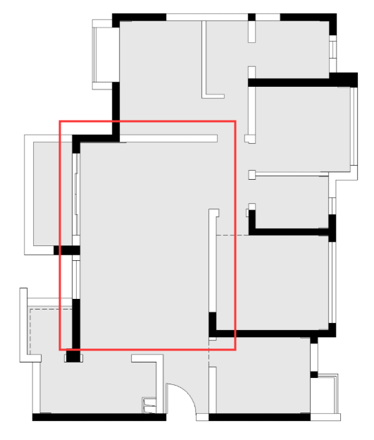 如果你的戶(hù)型是這樣的長(zhǎng)條戶(hù)型,可以有2種設(shè)計(jì)