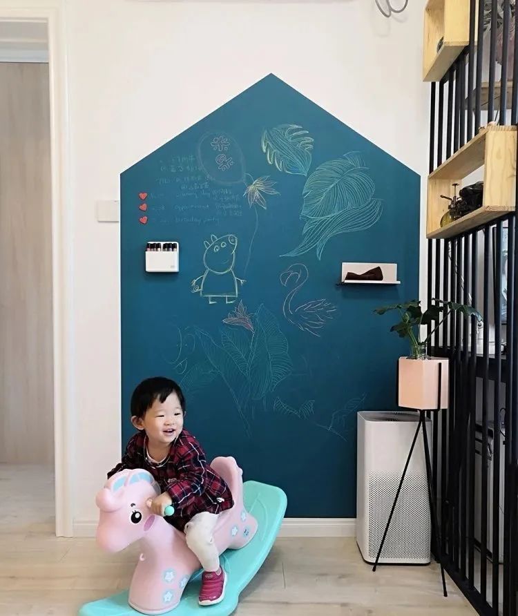 也可以找個(gè)地方,刷上彩色的黑板漆,作為孩子涂涂畫(huà)畫(huà)的創(chuàng)作區(qū)。