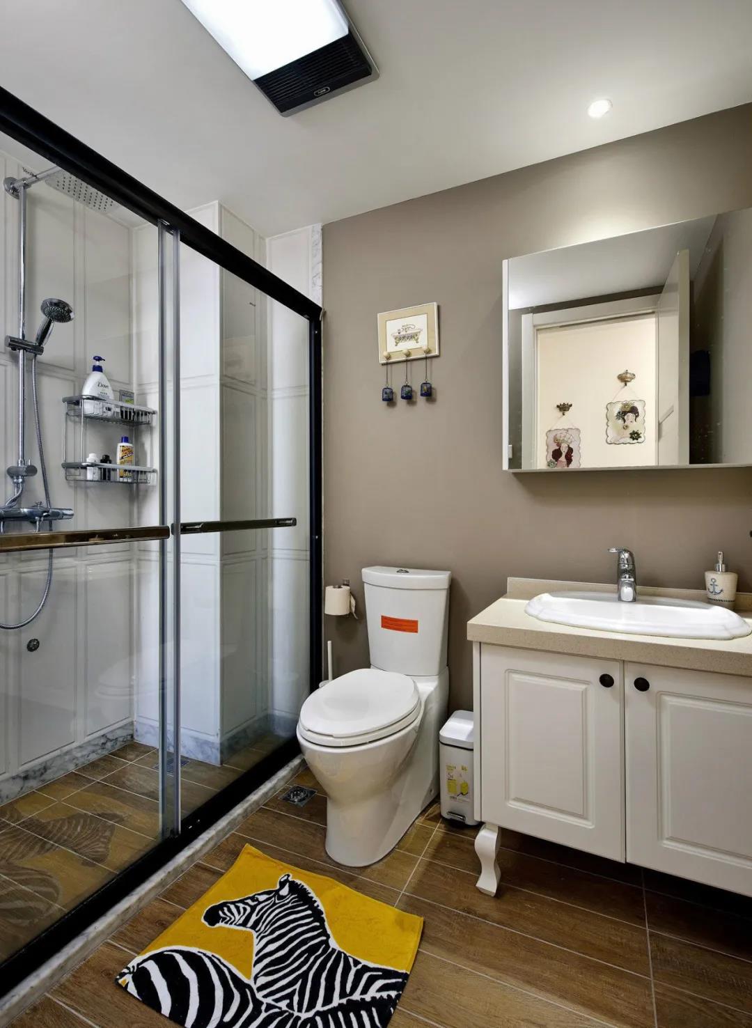 墻面做了多樣化處理,花色的瓷磚讓空間變得豐富;采用鏡柜既可以保持干燥,又可以收納生活用品,美觀實(shí)用。
