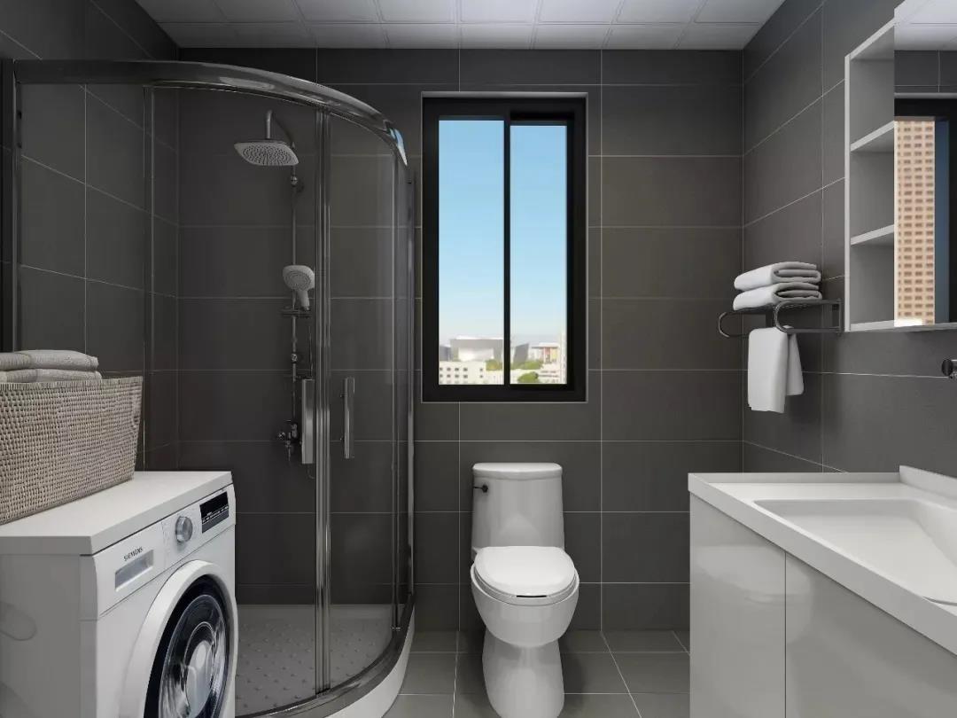 旁邊放置洗衣機(jī),洗澡時(shí)直接將臟衣服放進(jìn)去,動(dòng)線也是非常合理的。