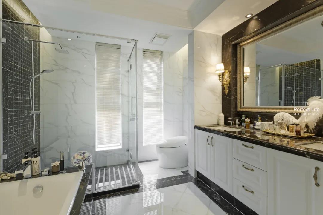 利用玻璃門(mén)將衛(wèi)生間直接一分為二,這樣就可以直接保持淋浴區(qū)之外的區(qū)域干燥,讓整體環(huán)境美觀干凈。