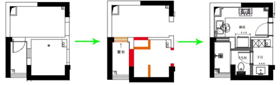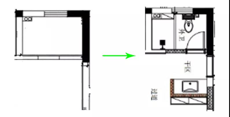 如果衛(wèi)生間太小,三分離是很難實(shí)現(xiàn)的,這就需要給衛(wèi)生間擴(kuò)容,常用的兩種改造方案:拆改墻體和洗手臺(tái)外移。