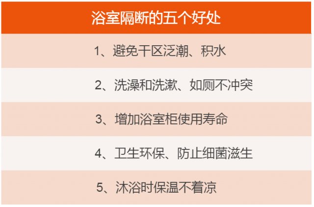 還有個關(guān)于隔斷浴室的安全提示:浴室平開門一定要向外開,萬一里面人暈倒,開不開門可不是鬧著玩的。