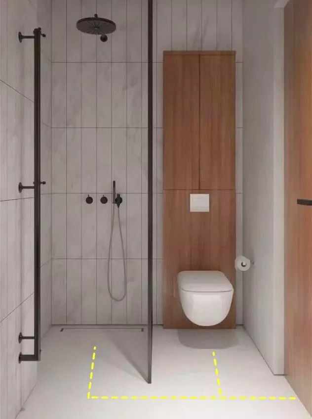 衛(wèi)生間做包管之后形成的不規(guī)則墻,可以做隔濕效果更好的“一”字形隔斷,形成獨立浴室。