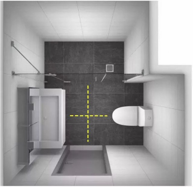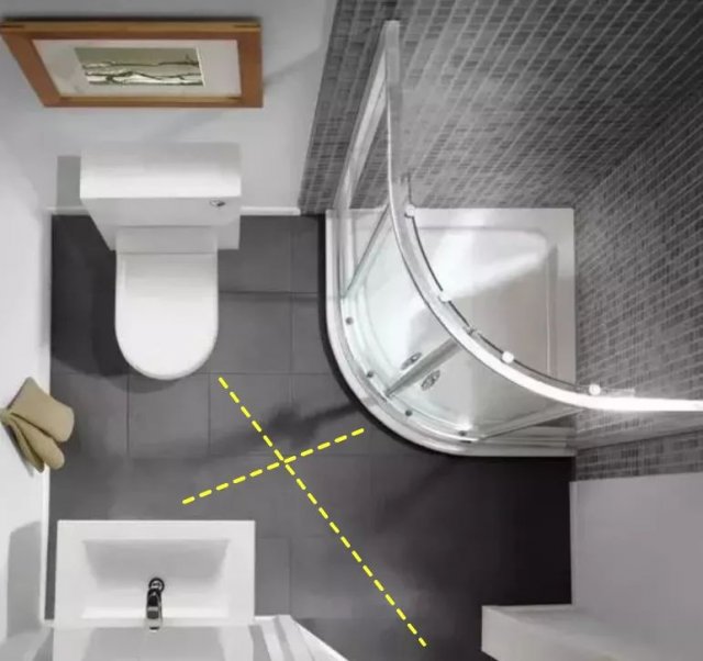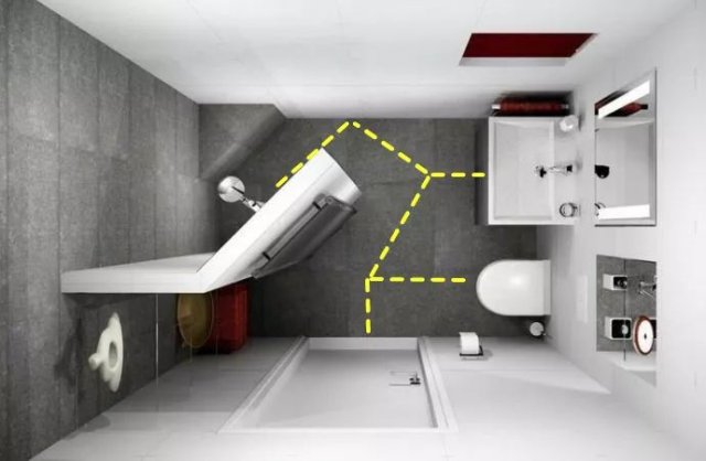 最內(nèi)側(cè)的不規(guī)則凹墻全部劃歸為淋浴區(qū)(俯視圖)