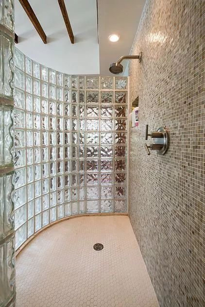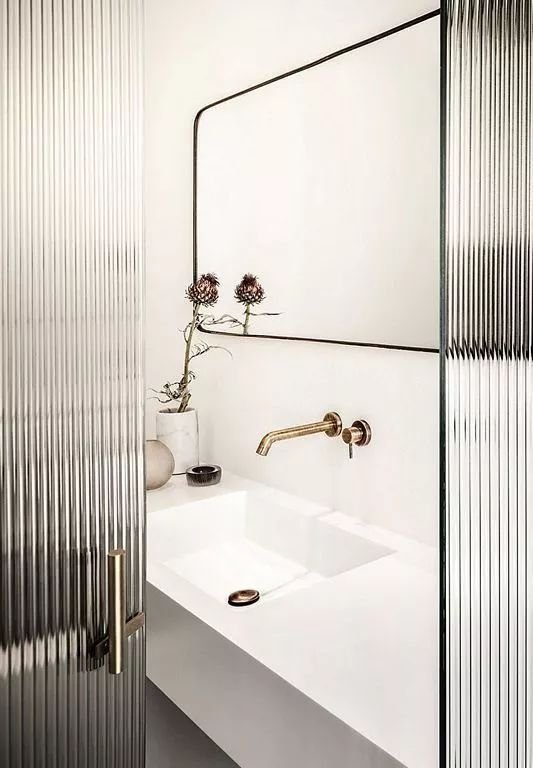 玻璃磚做隔斷,捉摸不定的水波紋也能保證隱私,不過造價不低哦。