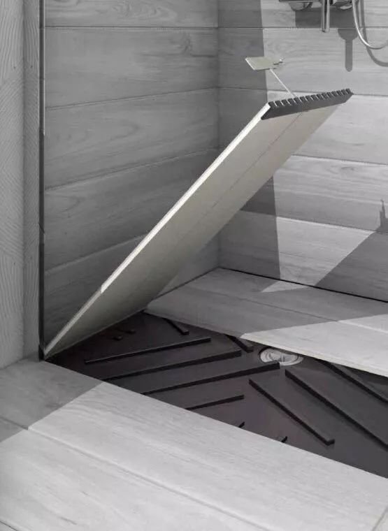 在擋水條安裝到位之后,及時排水成了淋浴隔斷里的大問題。為了地面不積水,可以在地面設(shè)計下面這種儲水蓋板(一般是防腐柏木材質(zhì))。