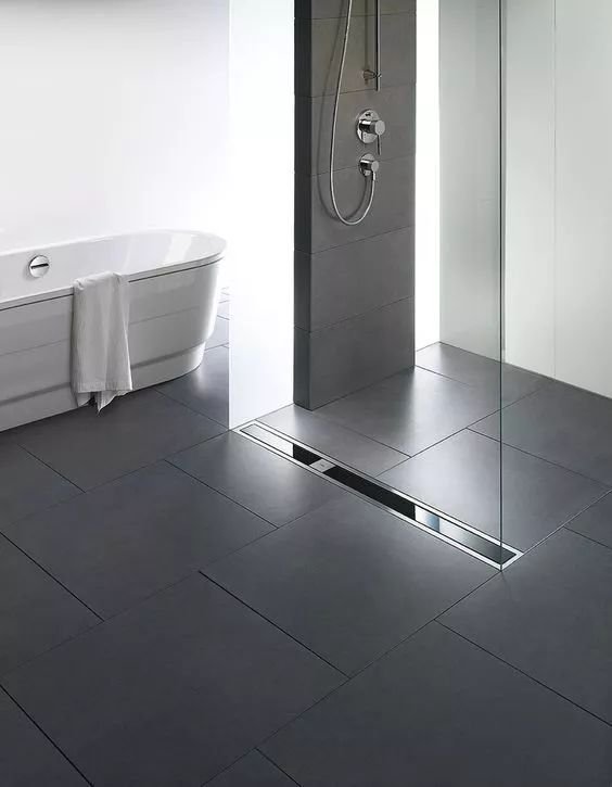 長條形的地漏設(shè)在隔斷外側(cè),也是為了方便積水快速排出。