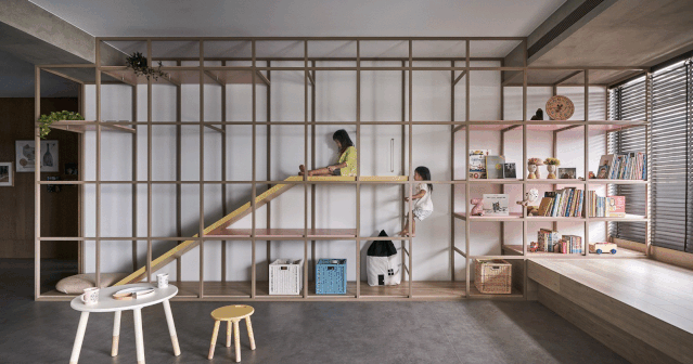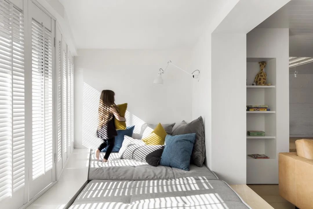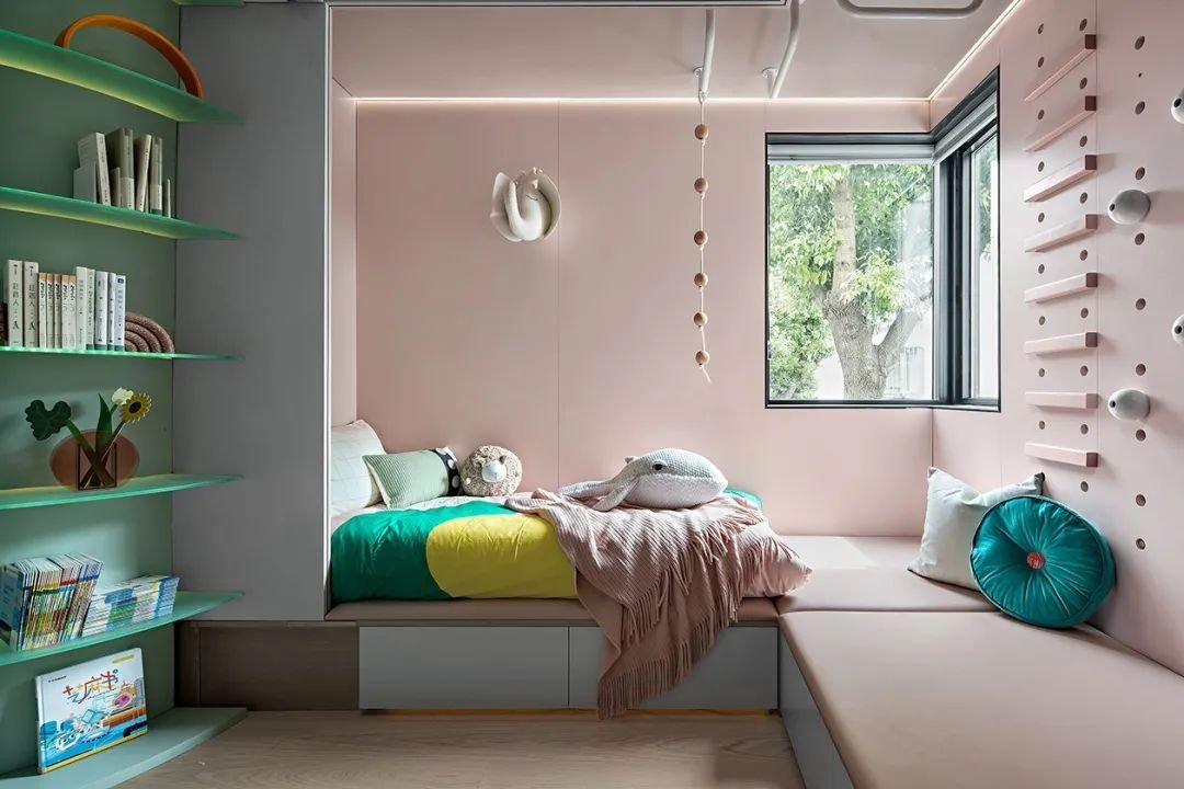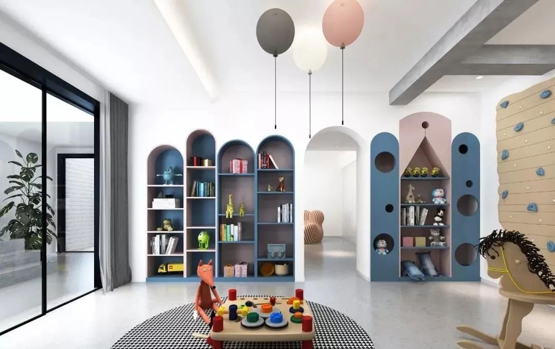 一個(gè)可供孩子玩耍的游戲空間非常重要,如果沒有專門的活動(dòng)室,可以在客廳騰出一點(diǎn)空間來:比如靠墻搭建一面攀巖墻,讓孩子釋放體內(nèi)的洪荒之力或橫廳沙發(fā)后留出一小部分區(qū)域給孩子搭建一個(gè)滑梯、游戲廳等。