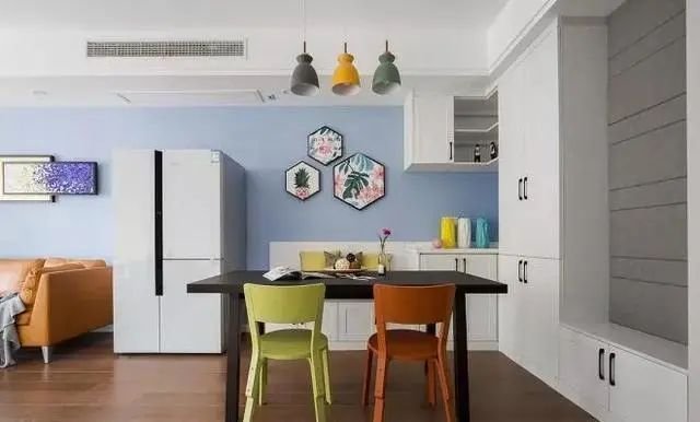 1、餐廳是愉快的就餐場(chǎng)所,插座也必不可少。很多人習(xí)慣將冰箱安放在餐廳,餐廳冰箱插座一般設(shè)置在距地40-50cm處,還需根據(jù)冰箱的尺寸和款式來(lái)做相應(yīng)調(diào)整。