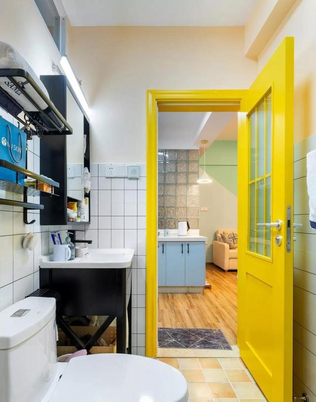 磨砂的長(zhǎng)虹玻璃衛(wèi)生間門(mén),采光和防潮性都好,如果擔(dān)心隱私,可以在外面加多一個(gè)紗簾。