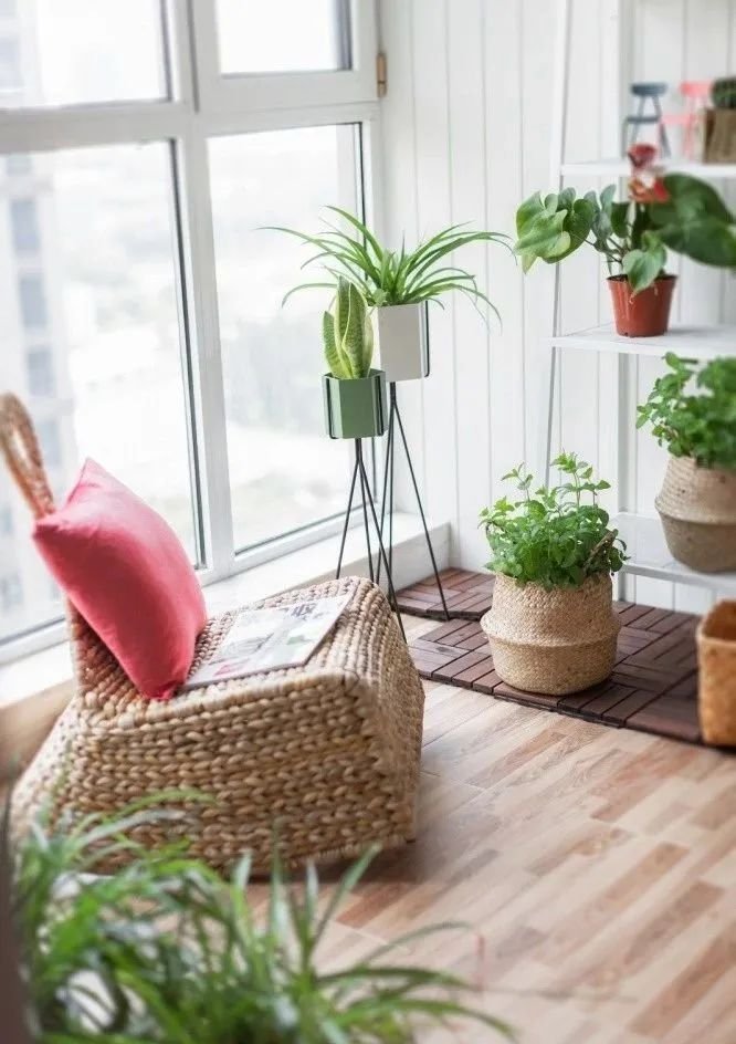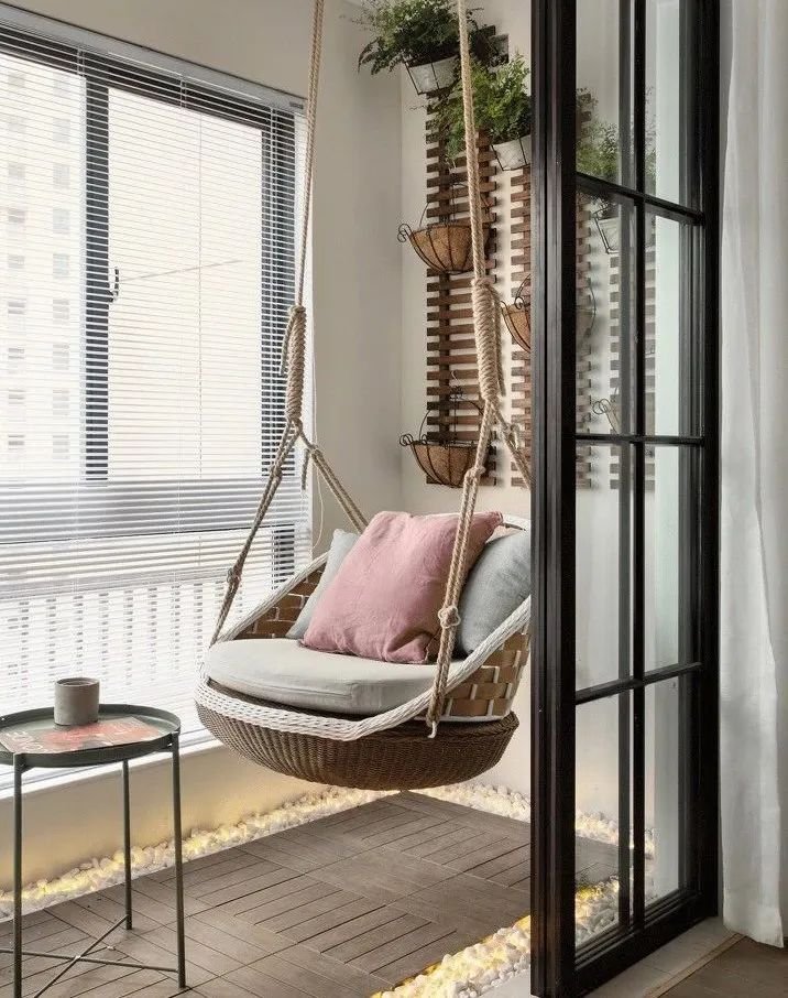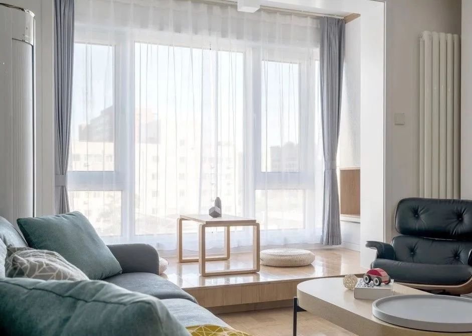 把陽臺抬高:這種做法是把陽臺抬高,鋪上地板后,直接作為矮地臺使用,隨便放個小桌子,幾個小坐墊抱枕就能變成一個休閑區(qū)。
