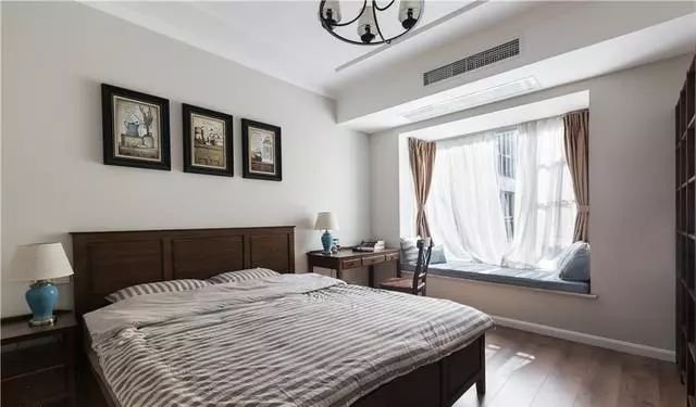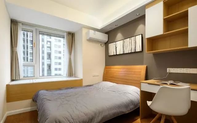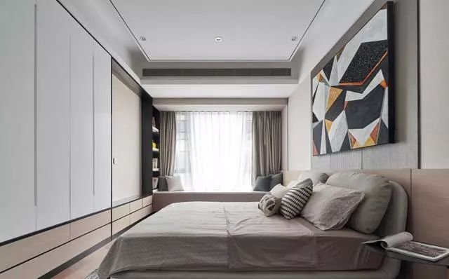 臥室的飄窗柜可以和衣柜一起定制,連成一排也是很好看的。