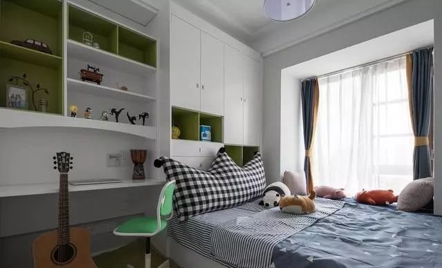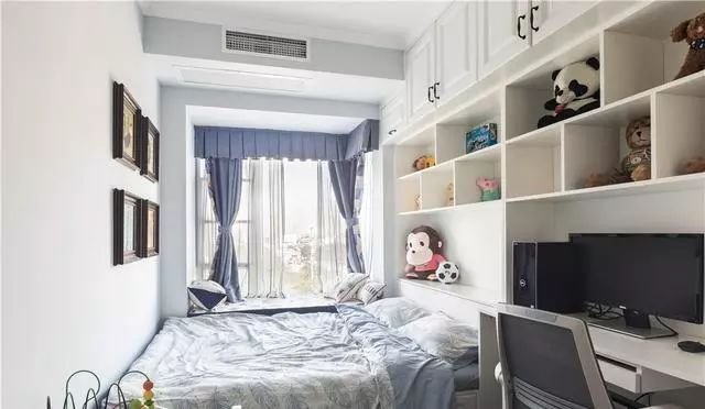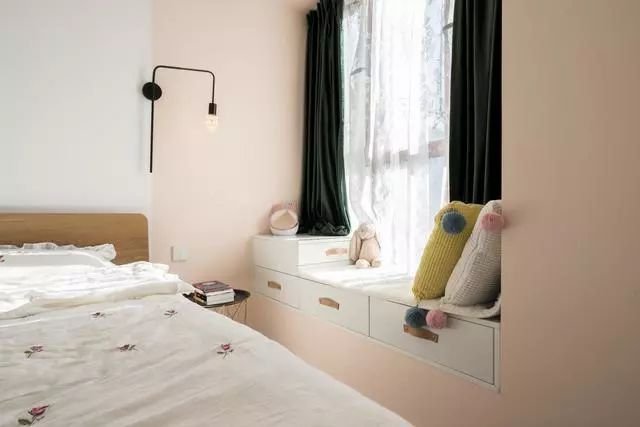 在飄窗上面加一個類似榻榻米的柜子也是可以的,這樣可以增加更多收納空間,在定制家具的時候,順便把這個柜子一起定制了。