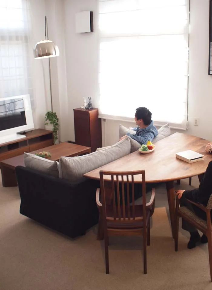 沙發(fā)后面也是可利用的區(qū)域,用餐不耽誤看電視,別看只有小小一塊區(qū)域,但對(duì)于三口之家來說足夠了,還能兼顧辦公。