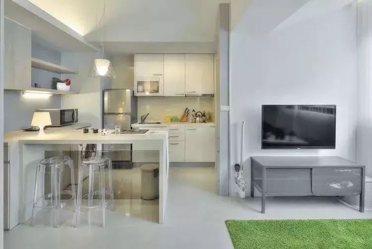 家里其實(shí)有很多的空間是被忽略的,例如過道,一般不會(huì)做任何裝飾或收納,可以選擇掛壁折疊式的餐桌布置在這里,方便、實(shí)用。