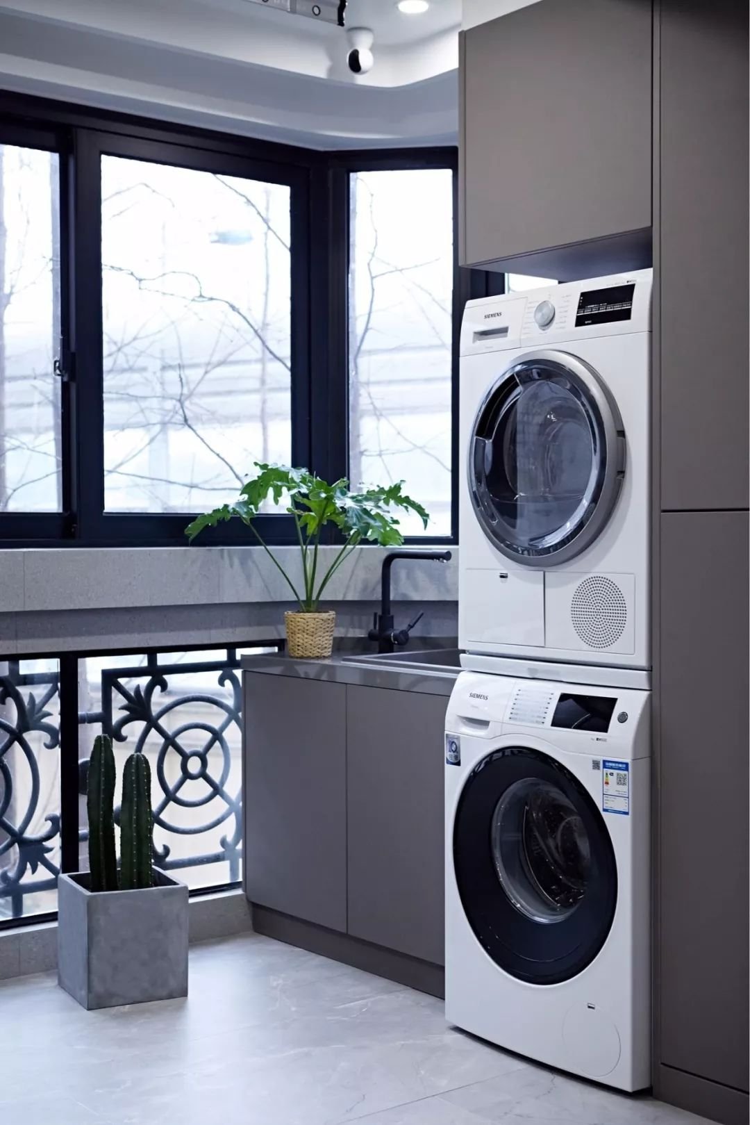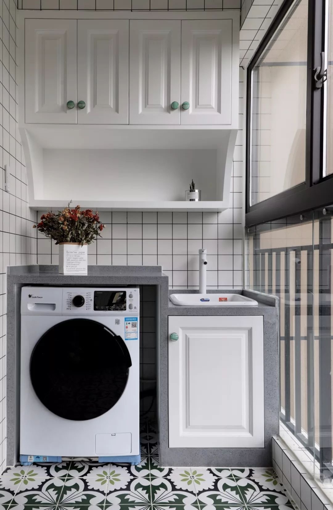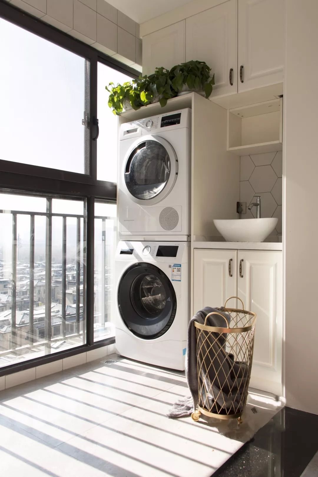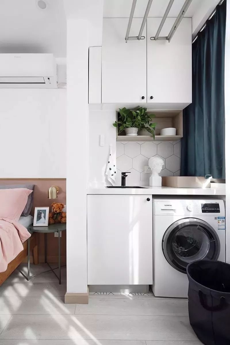 若陽臺不需要洗衣功能,也可以增設(shè)一個洗手盆,尤其是喜歡在陽臺種一些花花草草什么的,這里可以接水,而打理完花草后也可以在這里方便地洗手。