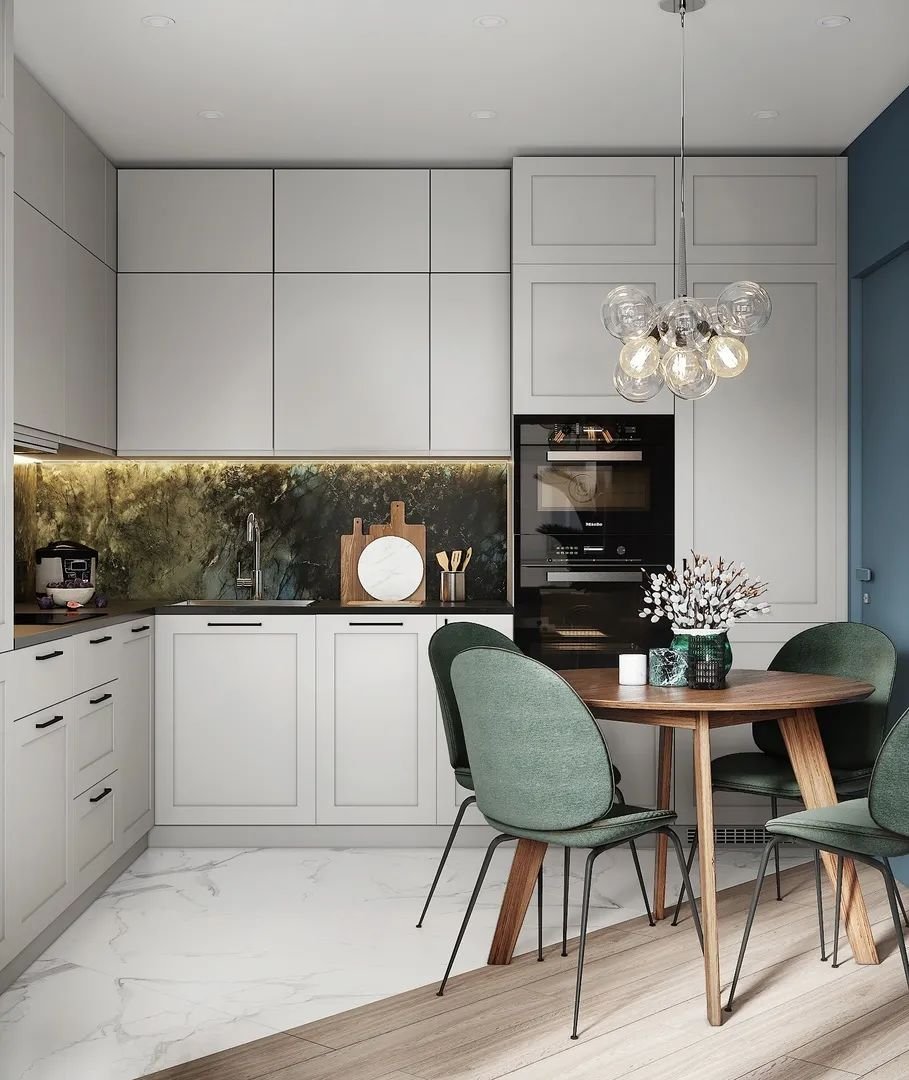 小廚房只需在原有U型布局基礎(chǔ)上調(diào)整尺寸就好,只要給通道留足空間,不影響來回走動(dòng)即可,可以將一側(cè)的地柜尺寸做小。