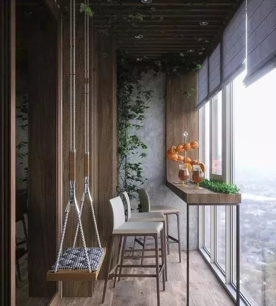 凸陽臺空間獨立,能靈活布局,但承重較差,可以做成景觀陽臺,放一些輕便折疊的家居。