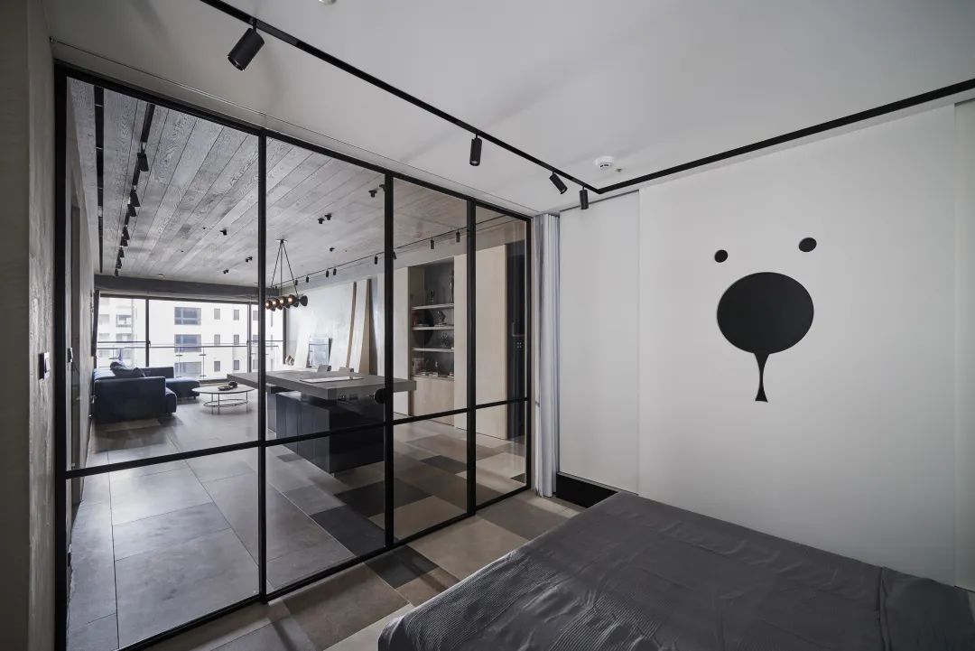 ▲玻璃隔墻促進(jìn)采光共享,讓沒有窗戶的空間也更明亮。