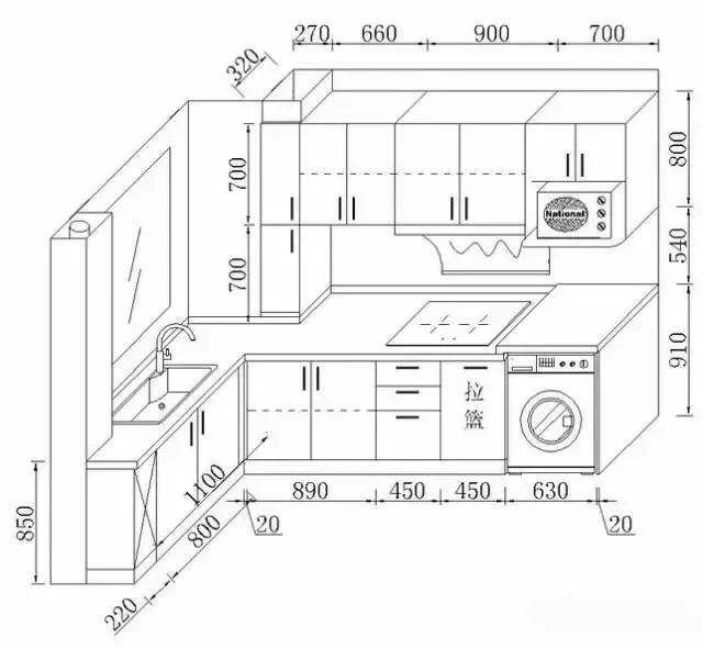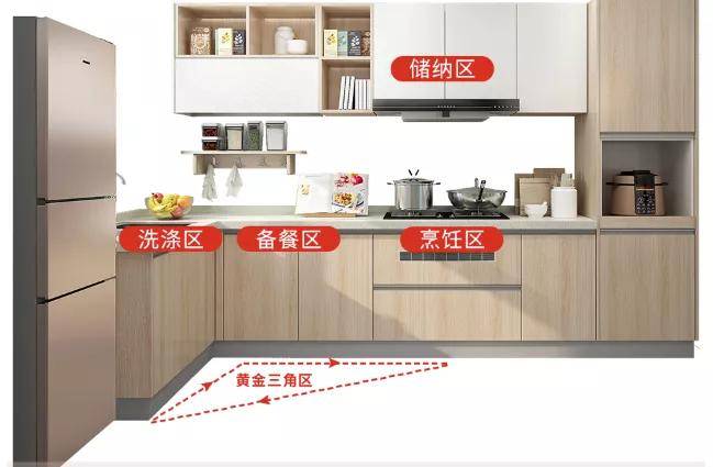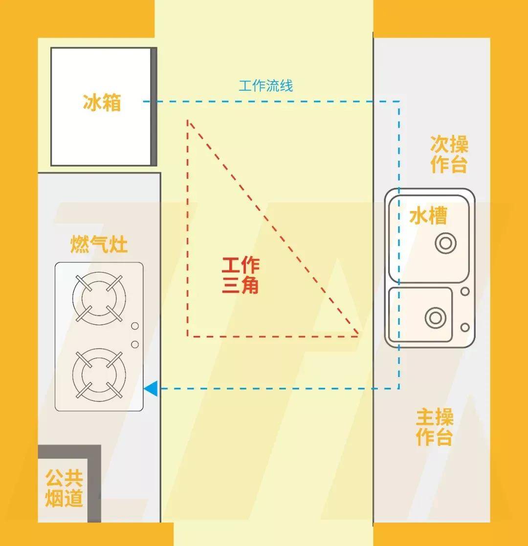 廚房的基本動(dòng)線是:洗菜(水槽)→切菜(臺(tái)面)→炒菜(爐灶)