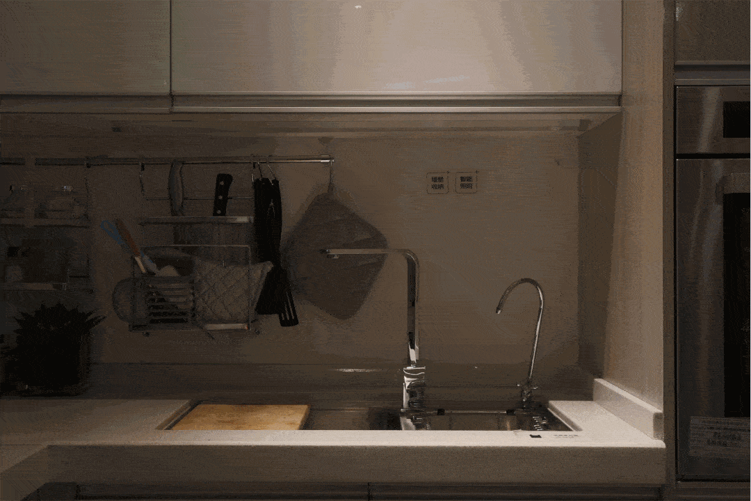 所以,一般廚房燈光設(shè)計(jì)是:頂燈+操作臺(tái)面燈光+柜內(nèi)燈。