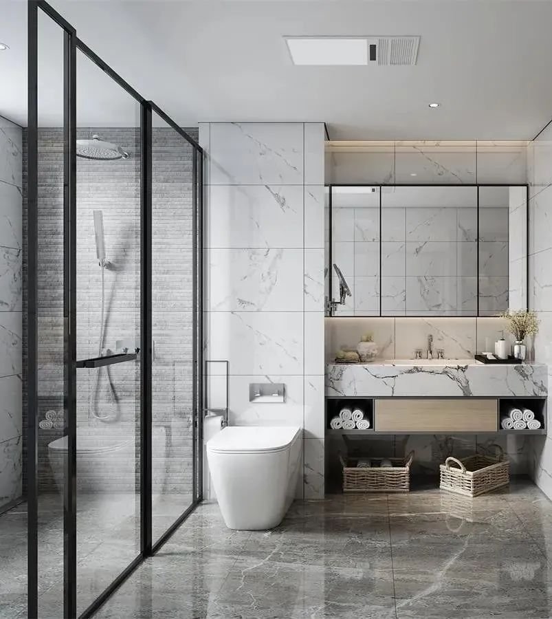 衛(wèi)生間墻面最多選擇還是瓷磚,根據(jù)工藝不同又分為:仿古磚、陶瓷錦磚、通體磚、拋光磚、?;u、釉面磚等多種。