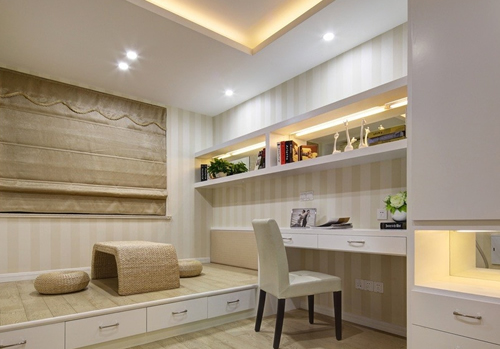 4、榻榻米不僅僅可以運用在臥室,在書房、兒童房、飄窗甚至客廳也可以采用榻榻米的形式,來幫助一些功能的實現(xiàn)。