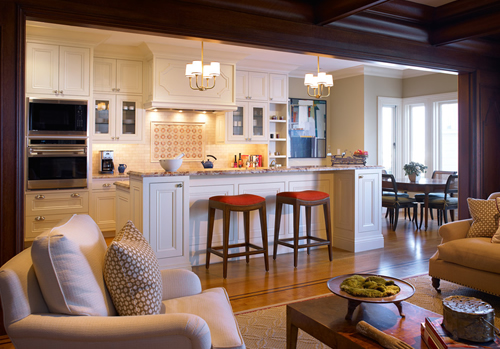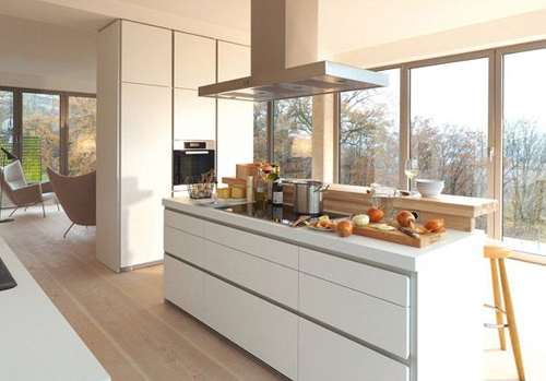 廚房新添的電器,就需要考慮留出空間來,如果廚房能在不影響整個居室空間的前提下敞開,可以考慮在拆掉的墻面處拓寬操作臺,否則就只能在櫥柜里預(yù)留空間。